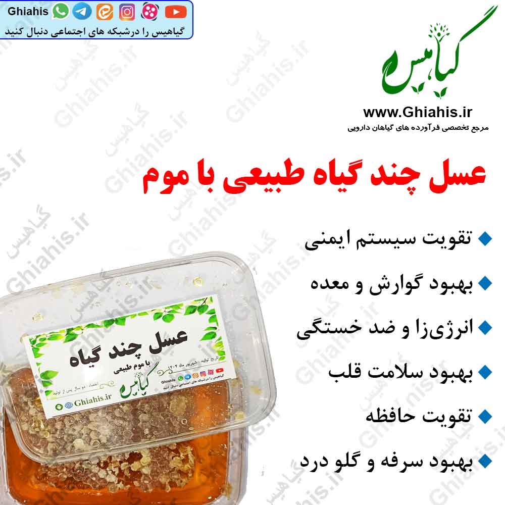 عسل چند گیاه طبیعی با موم