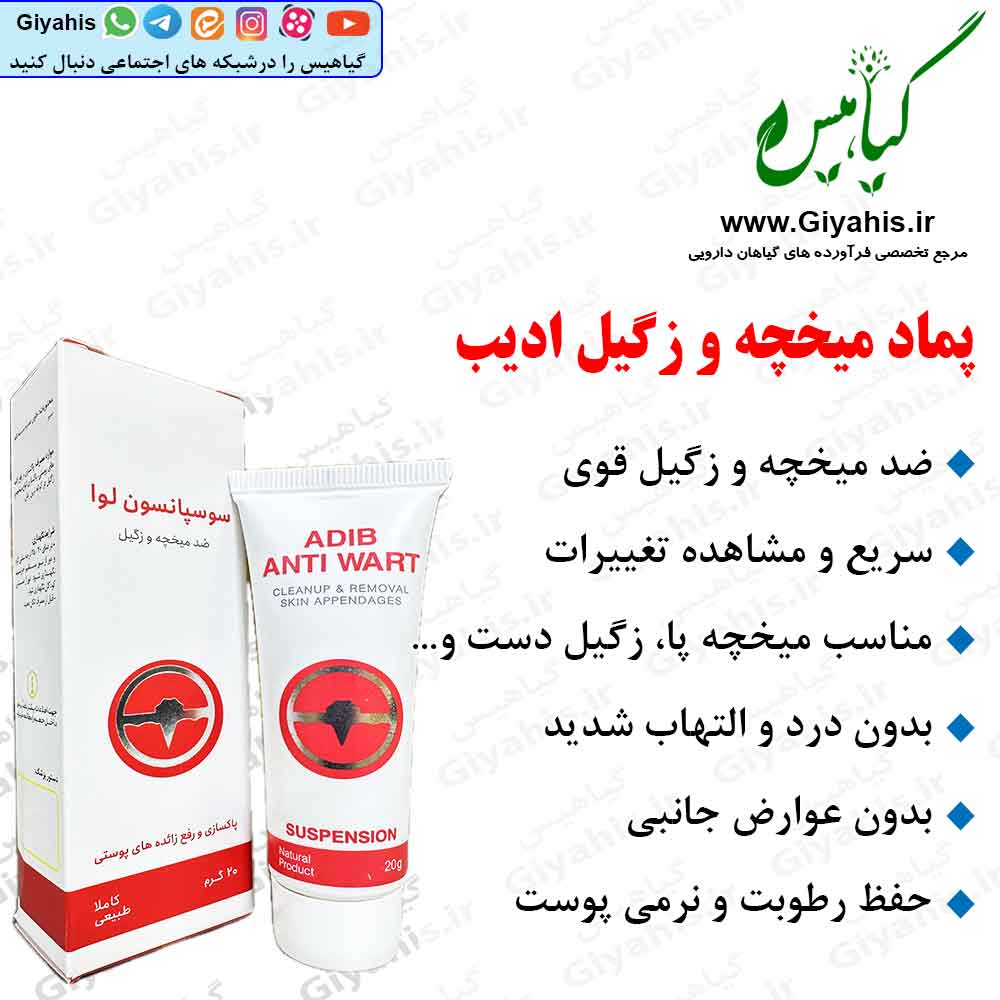 ویژگیهای تخصصی و علمی پماد میخچه و زگیل ادیب